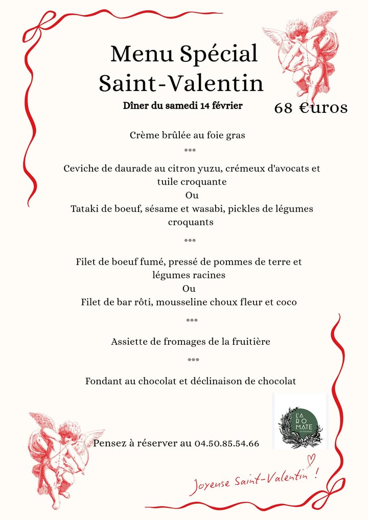 Au quotidien, découvrez notre menu du jour (entrée, plat et dessert) sur nos réseaux sociaux Restaurant L'Aromate Restaurant 1K Restaurant L'Aromate 2 jours 14 heures il y a Bonjour à tous! Cette semaine a l'Aromate le menu à 20euros : Salade de pommes de terre, rosbeef et moutarde a l'ancienne Ou Salade de Restaurant L'Aromate 3 jours 9 heures il y a Bonjour à tous! Pour la Saint-Valentin le chef vous propose un menu unique! Pensez à réserver! Bonne journée Restaurant L'Aromate 1 semaine 2 jours il y a Bonjour à tous! Cette semaine à L'Aromate le menu du jour à 20 euros: Oeuf mimosa Ou Quiche Lorraine *** Blanquette de veau et riz Restaurant L'Aromate 1 semaine 3 jours il y a Bonjour à tous! Pour la Saint-Valentin le chef vous propose un menu unique! Pensez à réserver! Bonne journée Restaurant L'Aromate 2 weeks 15 heures il y a Bonjour à tous! Aujourd'hui à l'Aromate le menu à 20 euros: Oeuf cocotte à la crème Ou Terrine de campagne *** Sauté de porc, tomates Restaurant L'Aromate 3 weeks 15 heures il y a Bonjour à tous! Cette semaine le menu du jour à 20 euros: Terrine de campagne Ou Oeuf mollet et crudités *** Hampe de boeuf grillée, Restaurant L'Aromate 1 mois 5 heures il y a Bonjour à tous! Cette semaine à L'Aromate le menu à 20euros: Velouté Dubarry Ou Salade de choux pommes et lard *** Cuisse de canard confite, Restaurant L'Aromate 1 mois 4 jours il y a Bonjour à tous! Toute l'équipe de L'Aromate vous souhaite une bonne année ! Aujourd'hui notre menu du jour à 20 euros: Poireaux vinaigrette *** Sauté Restaurant L'Aromate 1 mois 2 weeks il y a Bonjour à tous! Cette année l'Aromate sera ouvert pour la Saint-Sylvestre le mercredi 31 décembre au soir! Le chef à concocté un menu spécial pour Restaurant L'Aromate 1 mois 3 weeks il y a Bonjour à tous! Cette année l'Aromate sera ouvert pour la Saint-Sylvestre le mercredi 31 décembre au soir! Le chef à concocté un menu spécial pour